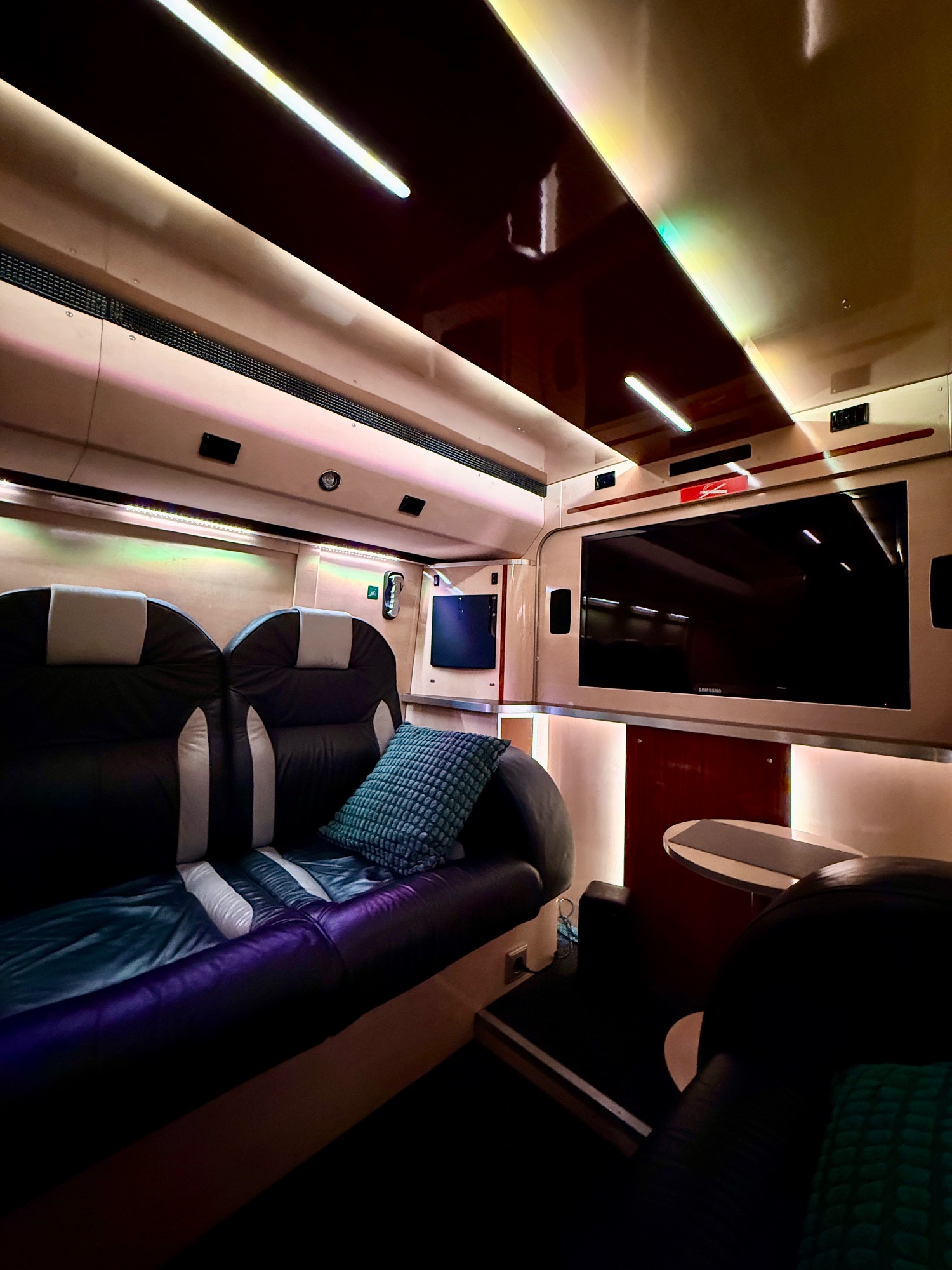 Der Nightliner bietet eine erstklassige Busausstattung, die ideal für lange Reisen ist. Mit zwei Toiletten an Bord wird hygienischer Komfort jederzeit gewährleistet. Der geräumige Trailer sorgt für zusätzlichen Stauraum und ermöglicht eine optimale Organisation des Gepäcks. In der vollausgestatteten Küche können sich Reisende mit köstlichen Snacks und Getränken versorgen. Zudem bietet der Nightliner 16 Bunkbetten für eine bequeme Übernachtungsmöglichkeit, während die Frontlounge mit gemütlichen Sofas und Sitzecken zum Entspannen einlädt. Für Unterhaltung sorgen eine Playstation und verschiedene Spiele, die die Zeit während der Fahrt verkürzen. So wird jede Reise im Nightliner zu einem rundum angenehmen Erlebnis.